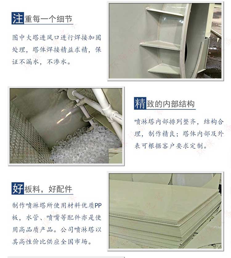 一、噴淋塔因其結(jié)構(gòu)簡單,設(shè)備運(yùn)行可靠,操作簡單等特點(diǎn),可應(yīng)用于多種廢氣處理的場合,去除廢氣中有害顆粒效率高。另外噴淋塔在使用中耗水、耗電指標(biāo)低,經(jīng)濟(jì)適用。佑泰環(huán)保在漆霧處理設(shè)備的選擇中,經(jīng)常使用pp噴漆塔,塔體的選材采用PP板制造、耐老化、外觀好。可以將漆霧集中收集處理,除漆霧效率可達(dá)85%以上。