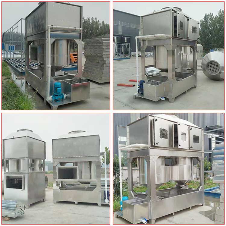 五、通過以上對比可以看出噴淋塔與氣旋噴淋塔是不一樣的產品,氣旋噴淋塔與普通噴淋塔相比,多了氣旋混動除塵除廢氣裝置,處理廢氣效果要好一些,當然價格也貴一些。另外普通噴淋塔一般使用PP,不銹鋼,玻璃鋼等材質制作。氣旋噴淋塔一般是用201不銹鋼或者304不銹鋼制作。